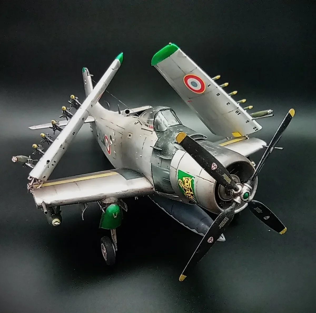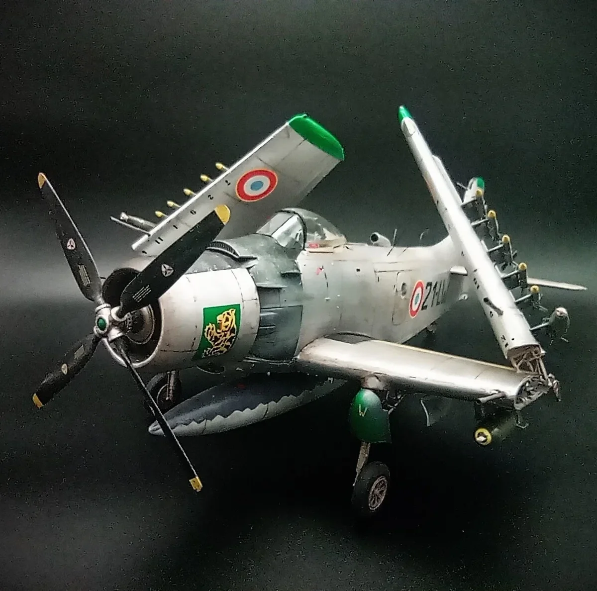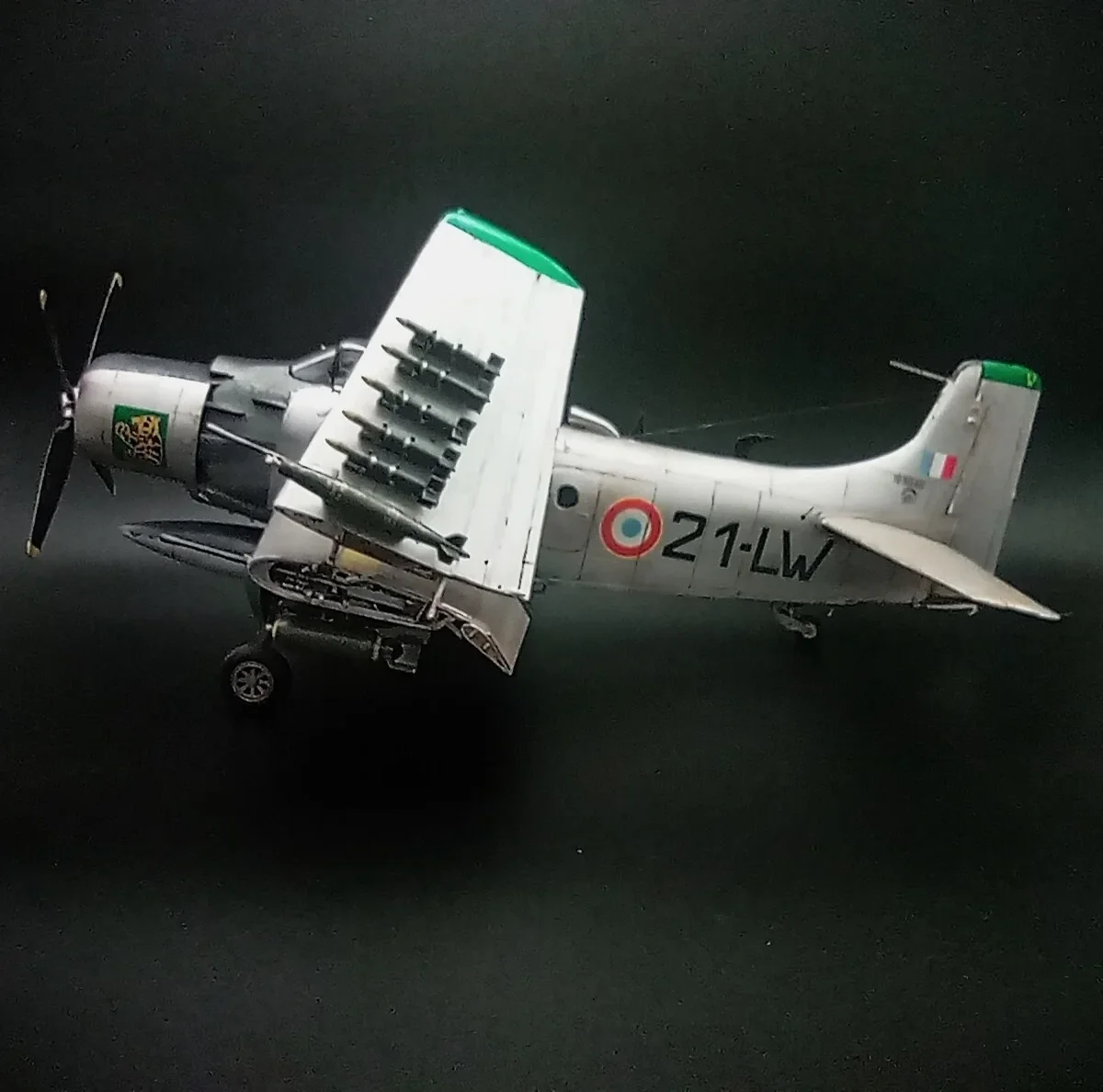 The Douglas A-1 Skyradier were designed as the new generation torpedo/bomber.Following the plan were changed for the end of the war,the Navy apply the Skyradier as a new attacker for the outstanding performance in the strike missions.The A-1J is the final production version of the Skyradier family,they were powered by a new R-3350-26WB engine and with structural improvements to increase wing fatigue life,some extra antennas were added on the fuselage.72 aircrafts were built.