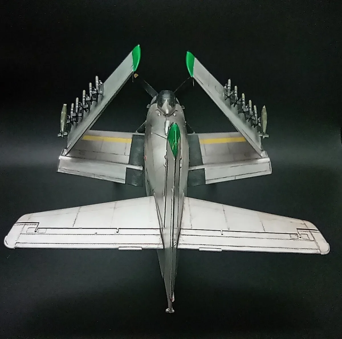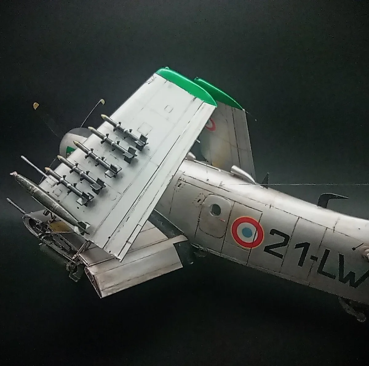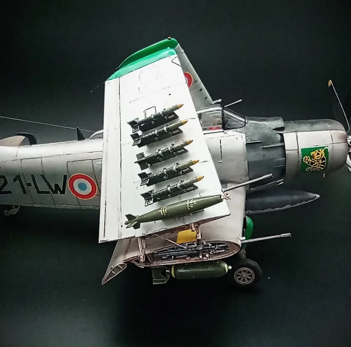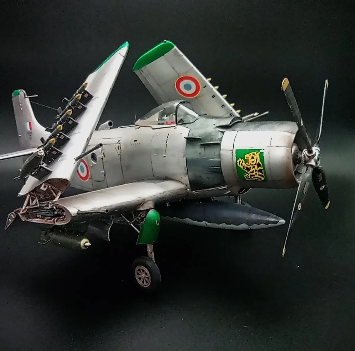The Douglas A-1 Skyradier were designed as the new generation torpedo/bomber.Following the plan were changed for the end of the war,the Navy apply the Skyradier as a new attacker for the outstanding performance in the strike missions.The A-1J is the final production version of the Skyradier family,they were powered by a new R-3350-26WB engine and with structural improvements to increase wing fatigue life,some extra antennas were added on the fuselage.72 aircrafts were built.