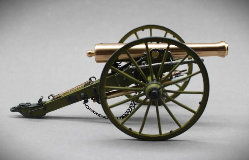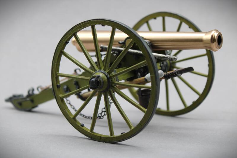 The M1857 12-pounder Napoleon or Light 12-pounder gun or 12-pounder gun-howitzer was a bronze smoothbore muzzle-loading artillery piece that was adopted by the United States Army in 1857 and extensively employed in the American Civil War. The gun was the American-manufactured version of the French canon obusier de 12 which combined the functions of both field gun and howitzer. The weapon proved to be simple to produce, reliable, and robust. It fired a 12.03 lb (5.5 kg) round shot a distance of 1,619 to 1,680 yd (1,480 to 1,536 m) at 5° elevation.[note 1] It could also fire canister shot, common shell, and spherical case shot. The 12-pounder Napoleon outclassed and soon replaced the M1841 6-pounder field gun and the M1841 12-pounder howitzer in the U.S. Army, while replacement of these older weapons was slower in the Confederate States Army. A total of 1,157 were produced for the U.S. Army, all but a few in the period 1861–1863. The Confederate States of America utilized captured U.S. 12-pounder Napoleons and also manufactured about 500 during the war. The weapon was named after Napoleon III of France, who helped develop the weapon.