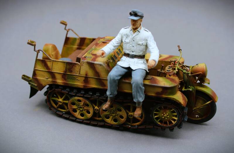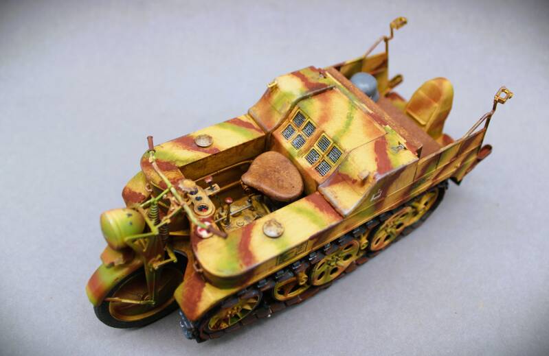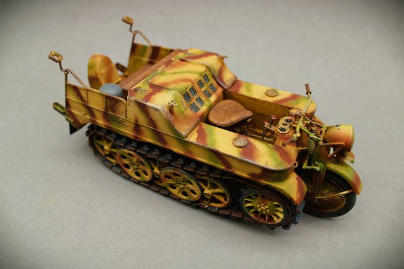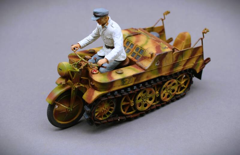 The Sd.Kfz.2 (kleines Kettenkraftrad Sd.Kfz. 2) is a German light multi-purpose vehicle from World War II. This vehicle was a kind of combination of a motorcycle and a tracked tractor. The prototype was built in 1940 at the NSU factory. In June 1941, it was officially adopted into the Wehrmacht's armaments program. More than 8,000 of these vehicles were built by 1945. Interestingly, production continued after the war for civilian use. The Sd.Kfz.2's primary tasks were transporting small loads, towing light artillery, and laying telephone cables. The Sd.Kfz.2 saw extensive service from 1942 onward, primarily in North Africa and on the Eastern Front. The vehicle had excellent off-road capabilities and a high top speed. Its drawback was its highly complex structure, particularly its suspension. Technical specifications: Length: 3 m, Width: 1 m, Height: 1.2 m, Engine power: 36 hp, Range (on roads): 250 km, Maximum speed (on roads): 70 km/h, Armament (security vehicle version): 1 machine gun MG-34 7.92 mm.